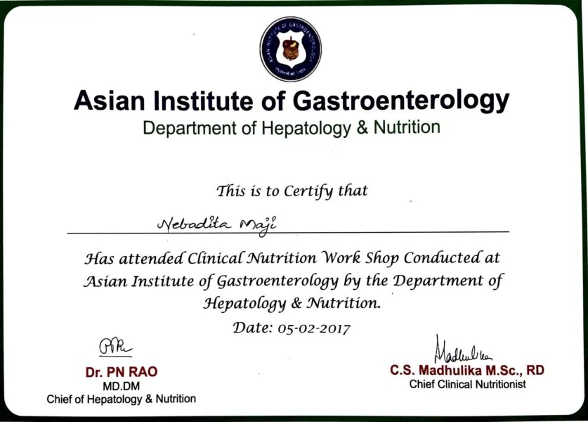 بعد الانتهاء بنجاح من ماجستير. في التغذية التطبيقية في المعهد الوطني للتغذية ، قمت بتدريبي في مستشفى فورتيس ، كولكاتا ومستشفى سامبوناث بانديت. خلال برنامجي ، كان لدي تعرض واسع النطاق لمرضى الطبقات الاجتماعية والاقتصادية المختلفة.