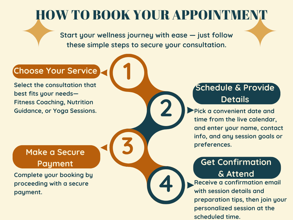 We collect your email and phone number to keep you informed about our fitness, nutrition, and yoga consultancy services. This may include consultation follow-ups and important service updates. Any extra information you choose to provide is optional and helps us personalize your experience.